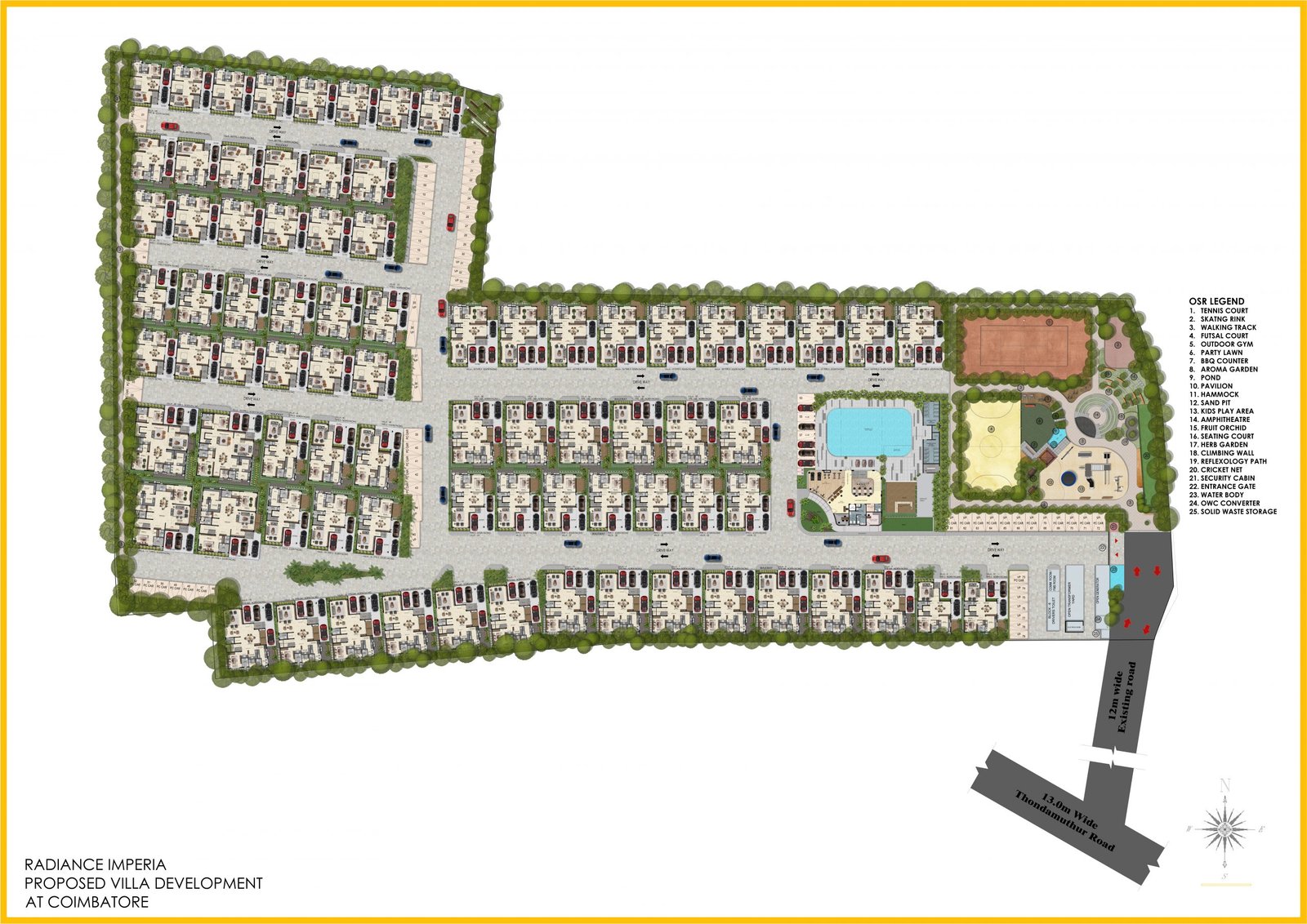 Radiance Imperia is an exclusive ultra-luxury villa community located in the lush heart of Veerakeralam, Coimbatore. Spread across 9 acres, the project offers just 80 premium villas, ranging from 3, 4 to 5 BHK, each thoughtfully designed with home theatres, private gardens, and minimum 3-car parking. With over 40 lifestyle amenities, Vaastu-compliant layouts, and top-tier finishes, Radiance Imperia delivers a rare blend of privacy, opulence, and convenience—just 10 minutes from RS Puram.